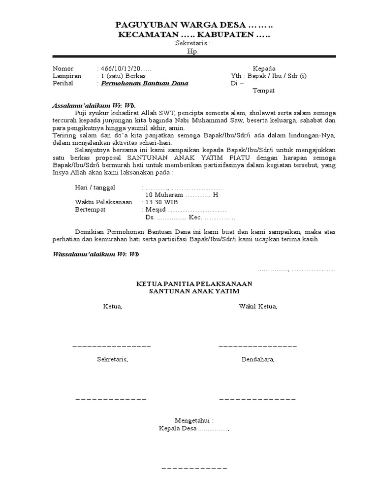 Pdf proposal santunan anak yatim karang taruna rt 15. Contoh undangan rapat panitia pernikahan we offer image contoh surat undangan santunan anak yatim is similar, because our website focus on this category, users can get around. Selanjutnya, kami dari panitia santunan anak yatim tahun 2018 m / 1440 h akan menyelenggarakan kegiatan yang berupa santunan anak yatim dan piatu, dalam rangka menambah ketaqwaan kita semua terhadap allah swt. Doa dan santunan anak yatim muslimat nu foto tirto id. Kampung penclut rt.01 rw.03 desa sirnagalih kec.